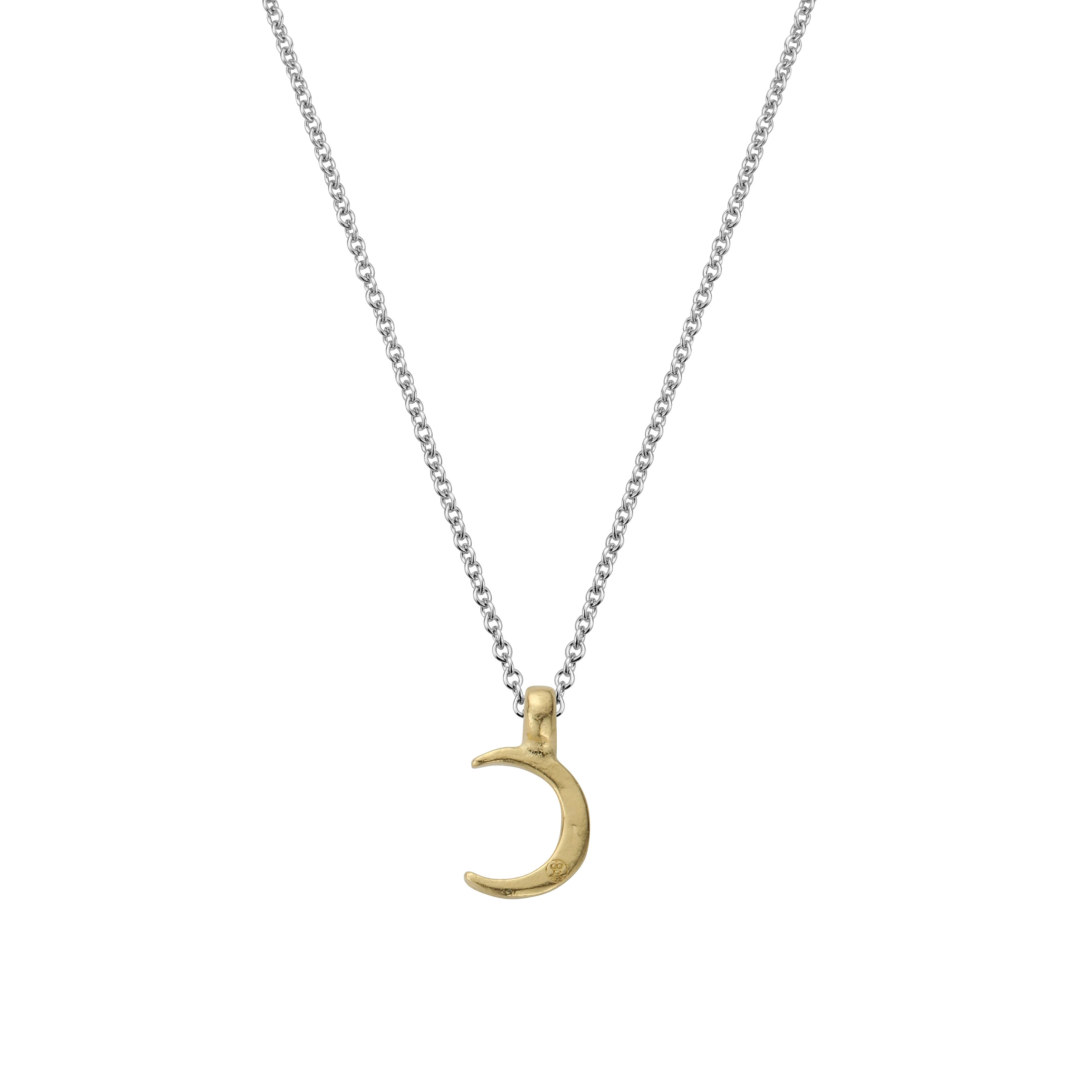 The Mini Crescent Moon Necklace is made using recycled solid sterling silver & 9ct yellow gold. Wear alone or layer with other DD necklaces to create your own unique look!
