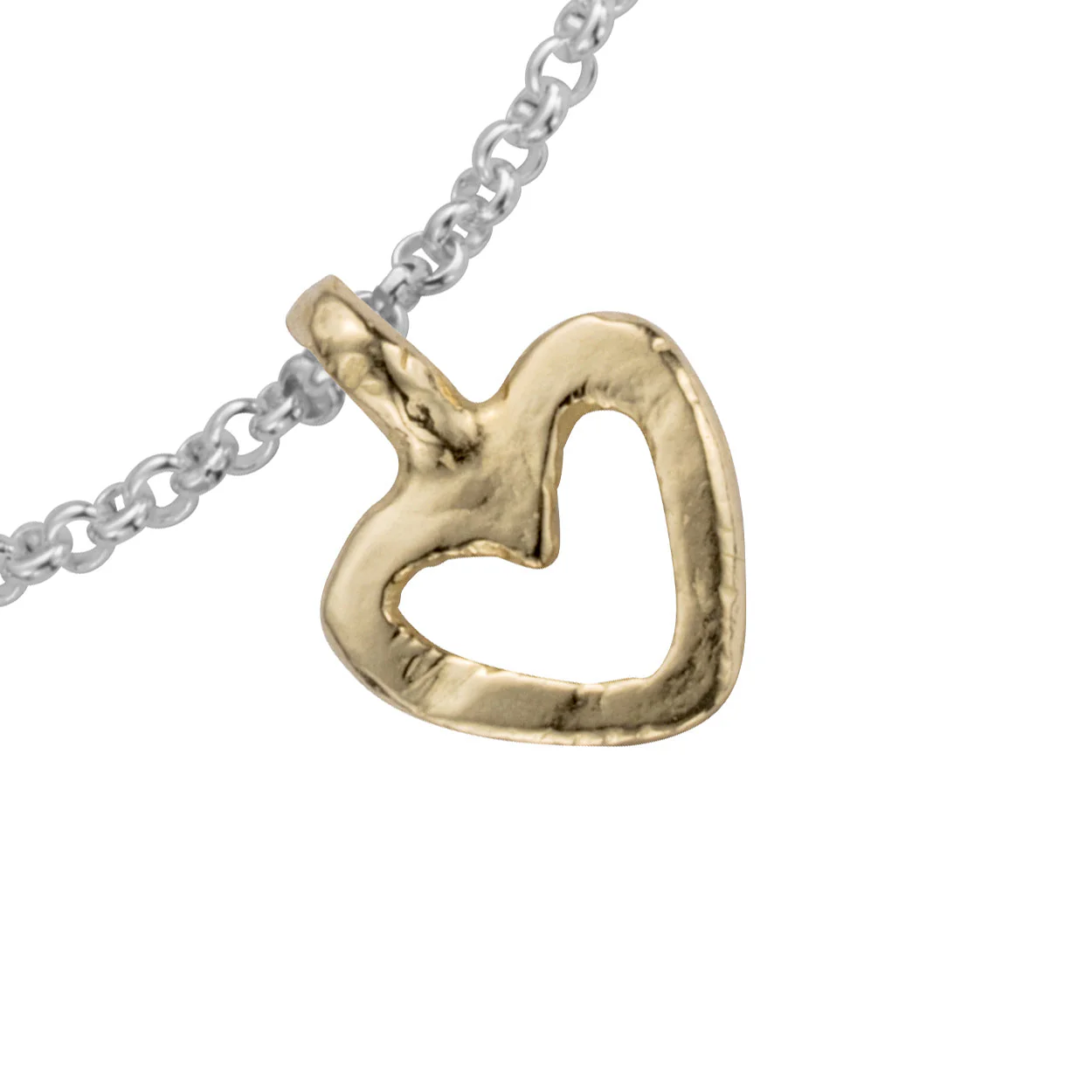 Silver & Gold Mini Open Heart Chain Bracelet